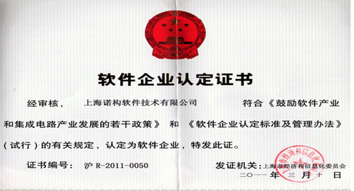 软件企业认定证书